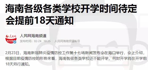海南:开学时间提前18天通知