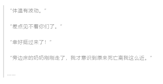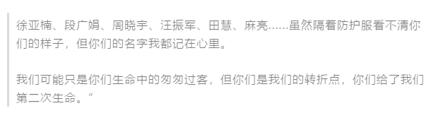 “在我已经绝望的时候,你们把我拉回人间,让我又看到了这个春天。”